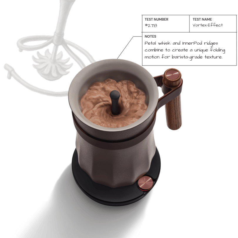 Combining a custom designed whisk with patent-protected innovation, the all new Velvetiser's Vortex-Effect creates an unrivalled texture.